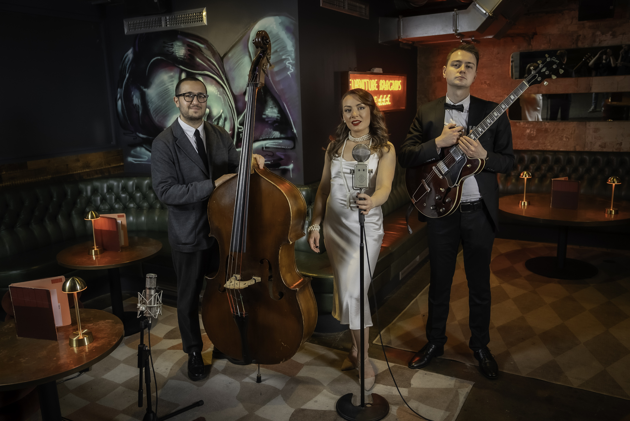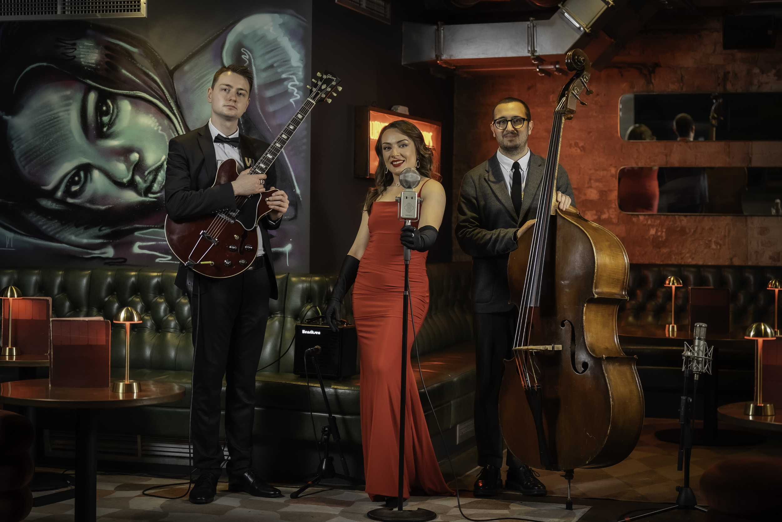 Velvet Jazz Trio deliver a sophisticated blend of timeless jazz standards, iconic classic musical theatre songs, and popular Pop hits, reimagined in stylish jazz arrangements. They're one of the most sought-after acts, known for their luxurious sound and elegant appearance. Ideal for upscale parties, elegant corporate events, or any memorable occasion, their performances always captivate and impress guests.