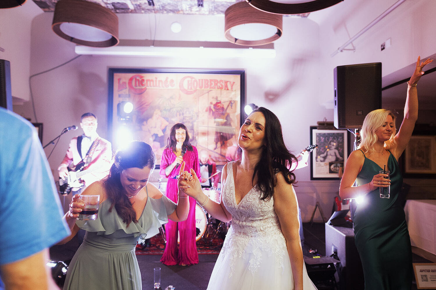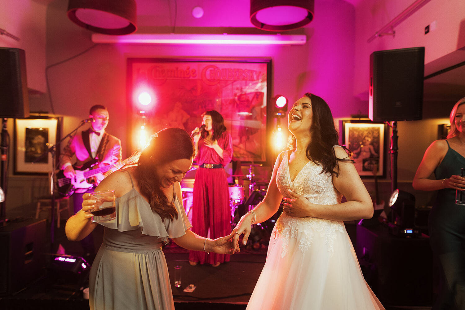 We cannot rate Juno Royale highly enough! They absolutely smashed it and provided incredible music and entertainment for our wedding in May 2022. They were very quick to respond to emails and they matched our style so well. They look incredible in their pink suits and the pink glittery drum kit was a big hit! They are all incredibly talented and so friendly, they made our wedding day so much more fun. Would book them again without question.